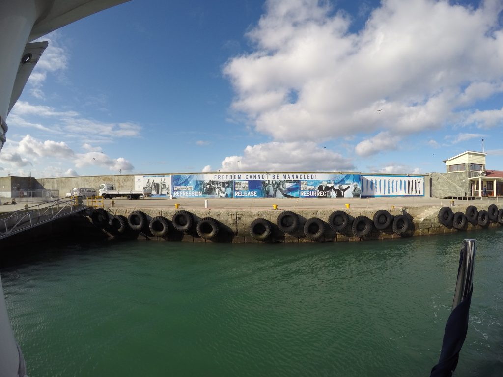 J’ai donc débuté ma journée avec encore un excellent déjeuner à l’anglaise. Quel excellent moyen de débuter une journée! Quel contraste quand je compare mon séjour à Paris l’an dernier à ceux en Angleterre et ici cette semaine alors que j’étais incapable de trouver un endroit sur Paris servant le petit déjeuner… (svp mes collègues français, ne soyez pas trop choqués!). Ensuite, direction le quai d’embarquement pour 11 kilomètres en bateau vers Robben Island. Une fois sur l’île, nous avons eu droit à un tour guidé en autocar des principales attractions de l’île et ensuite à une visite de la prison avec un second guide qui était autrefois un détenu politique à cette même prison. Je savais ce qu’était l’Apartheid de manière très générale, mais il était fort intéressant d’en apprendre davantage sur cet événement marquant de l’histoire culturelle et politique de ce pays du point de vue de ceux qui ont été oppressés par le régime en place.