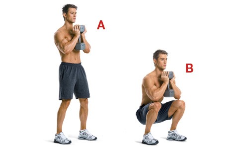 Je crois qu’il faut être en mesure de corriger la posture et de bien enseigner le mouvement du squat afin de bien préparer les individus pour qu’ils puissent en retirer les bénéfices. Nous squattons bien à tous les jours lorsque l’on s’asseoit! De là l’essentiel de bien savoir performer le mouvement. à partir de là, j’aime bien débuter l’enseignement du patron moteur du squat avec le goblet squat, une variante inventée par Dan John. On tient un dumbbell devant soi, sur la poitrine, ce qui nous force à maintenir le torse haut, avec une courbure neutre au niveau de la colonne vertébrale. Cette exercice permet ensuite de bien initier le mouvement à la hanche, sollicitant ainsi le recrutement de la chaîne postérieure (muscles fessiers et ischios-jambiers) et aidant à développer cette mobilité à la hanche autrefois perdue.