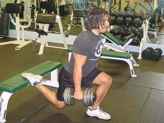 Mais bon, ici se trouve une source de conflit entre différentes philosophies d’entraînement. Certains diront que le squat doit être réalisé en initiant le mouvement au genou et en réalisant une flexion profonde, comme lors de la réception du mouvement olympique. Cette flexion profonde offre notamment une stimulation optimale du muscle VMO (vastus medialis obliquus) et confère un meilleur développement de la stabilité de l’articulation du genou. Pour d’autres, le mouvement doit s’initier à la hanche, comme lors du squat en dynamophilie (Powerlifting) de manière à solliciter davantage les muscles de la chaîne postérieure, souvent inhibés à cause du raccourcissement des muscles fléchisseurs de la hanche et du droit fémoral. Personnellement, je tends à utiliser davantage le squat de style dynamophilie, c’est-à-dire que le genou est légèrement plus haut que l’articulation de la hanche. Par la suite, pour solliciter le VMO, j’utilise d’autres exercices à flexion profonde, notamment les exercices de lunges et split squat.